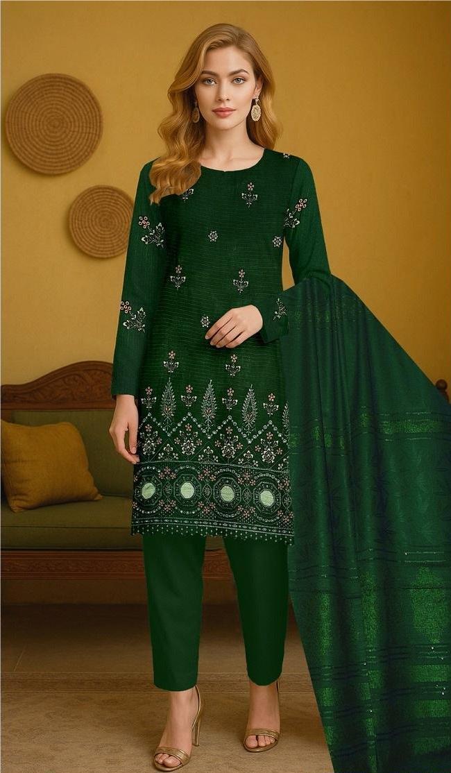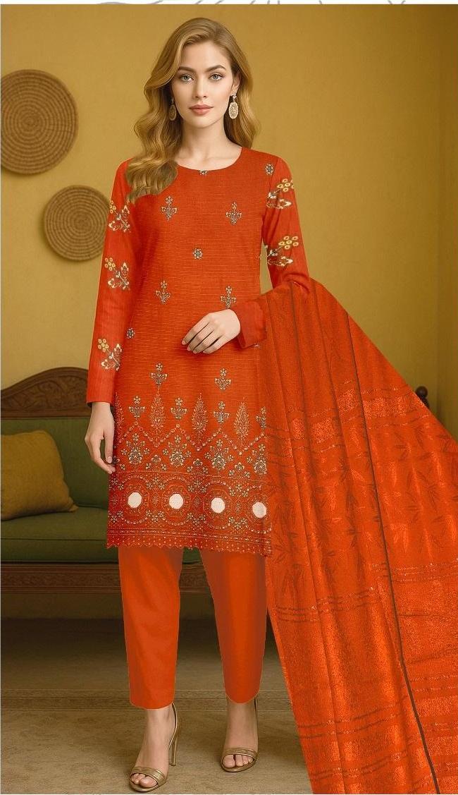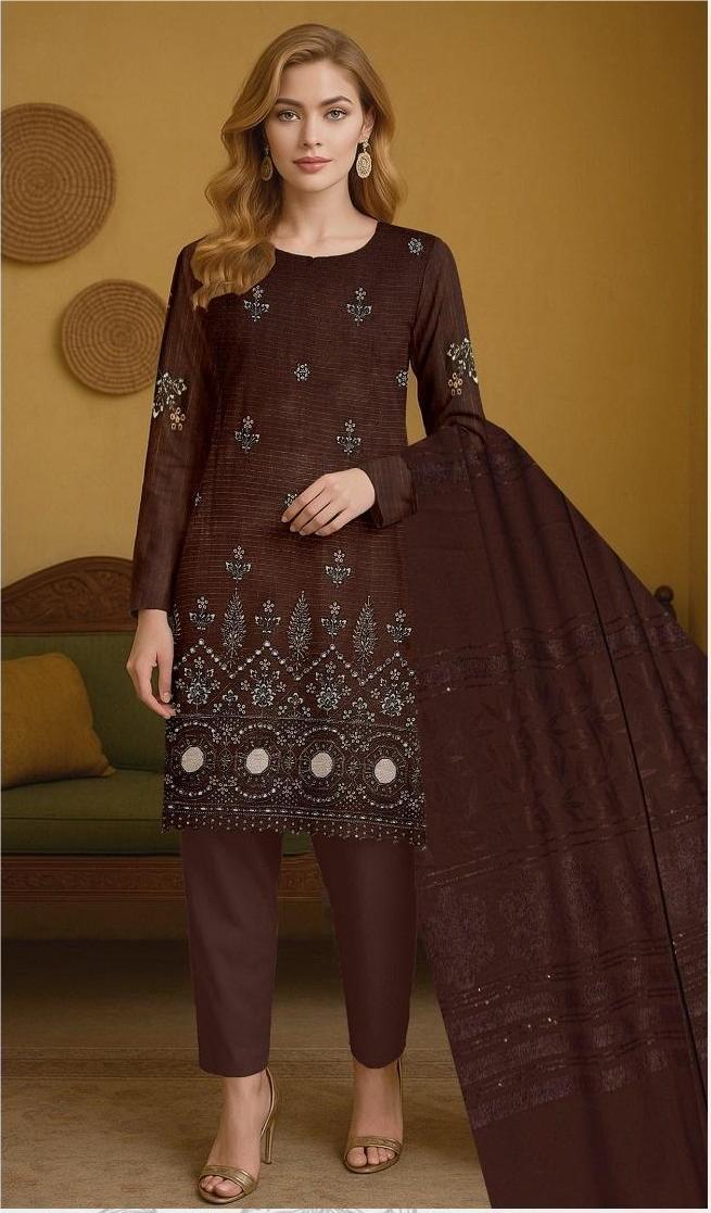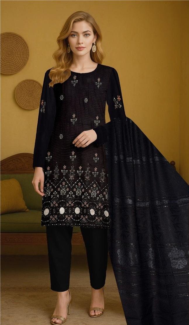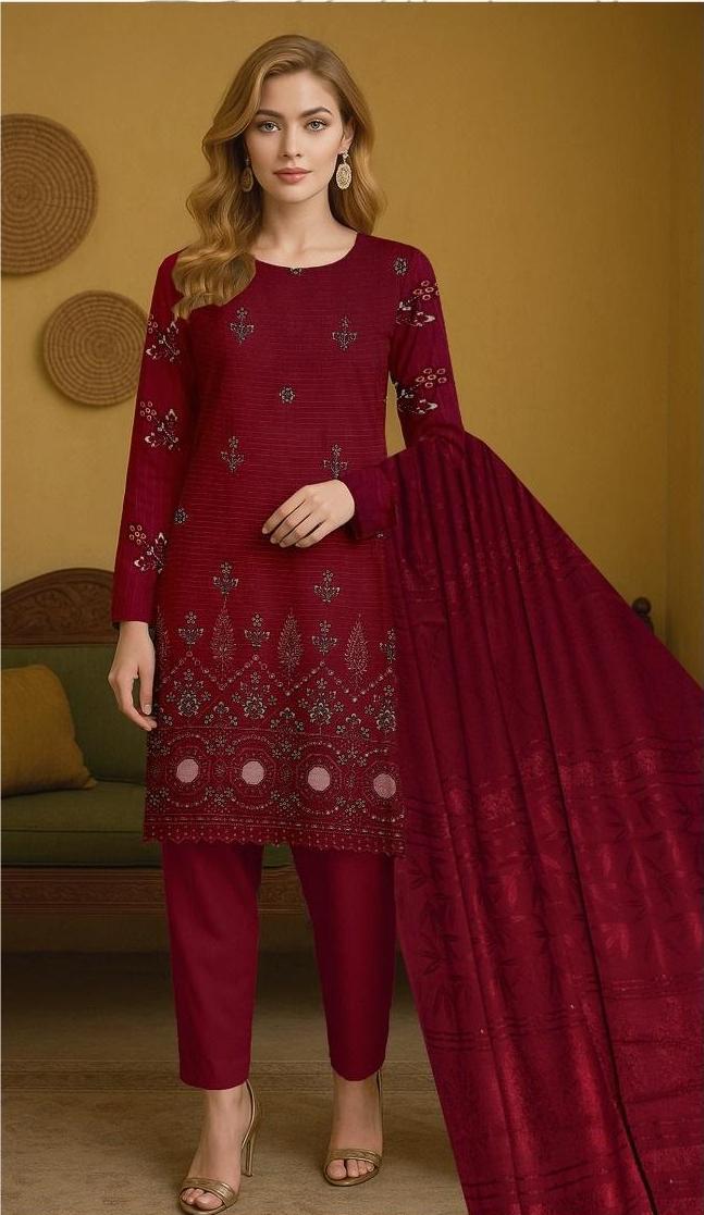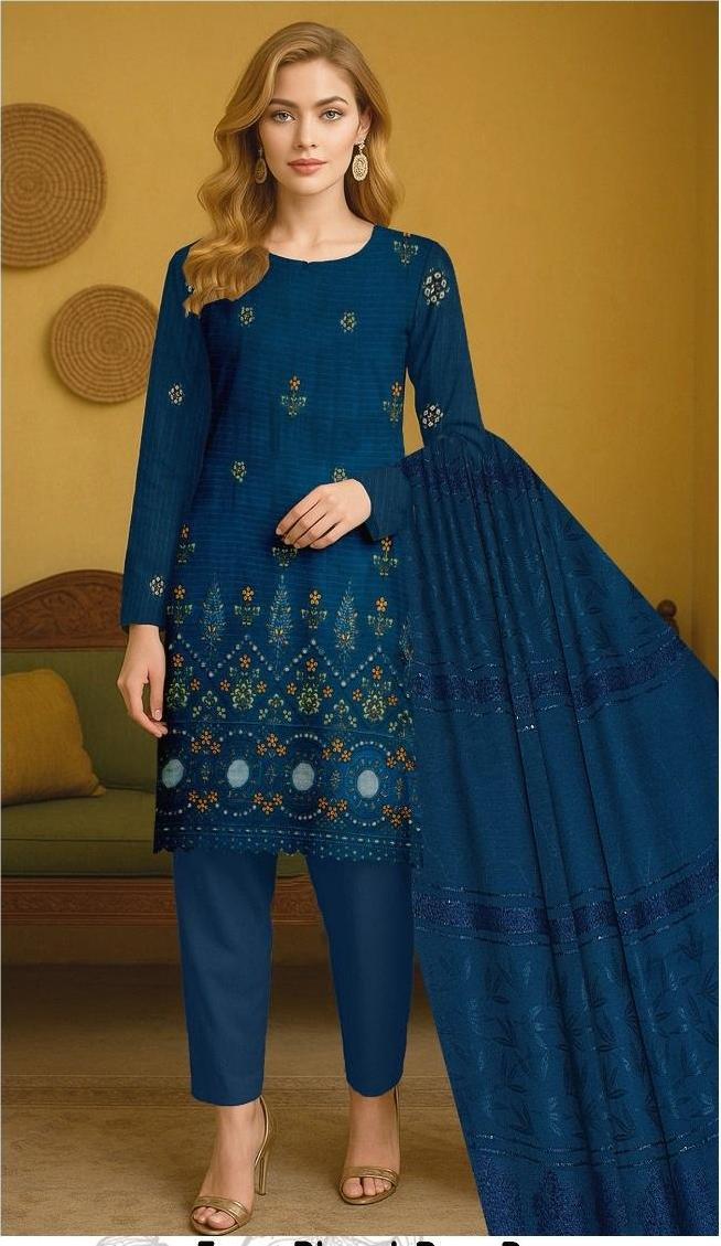 Elevate your winter wardrobe with this stunning Fancy Dhanak 3-Piece Suit, crafted with elegance, comfort, and premium detailing.