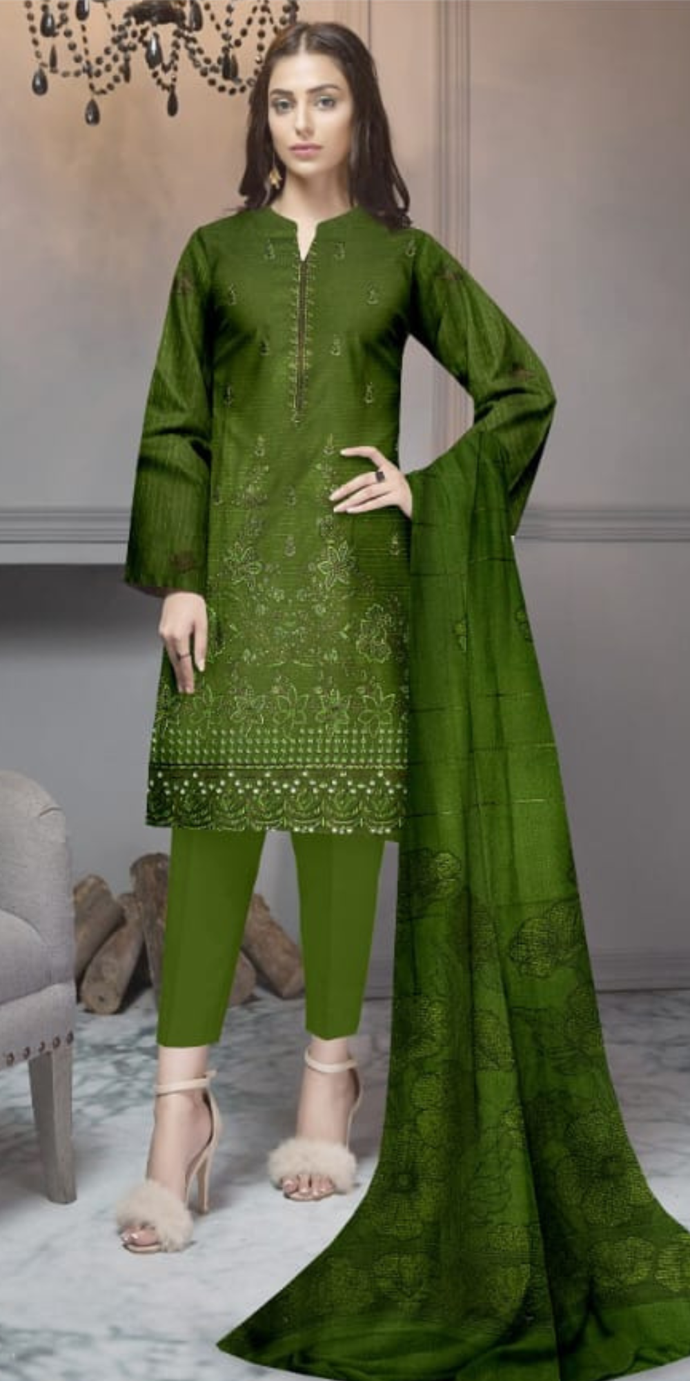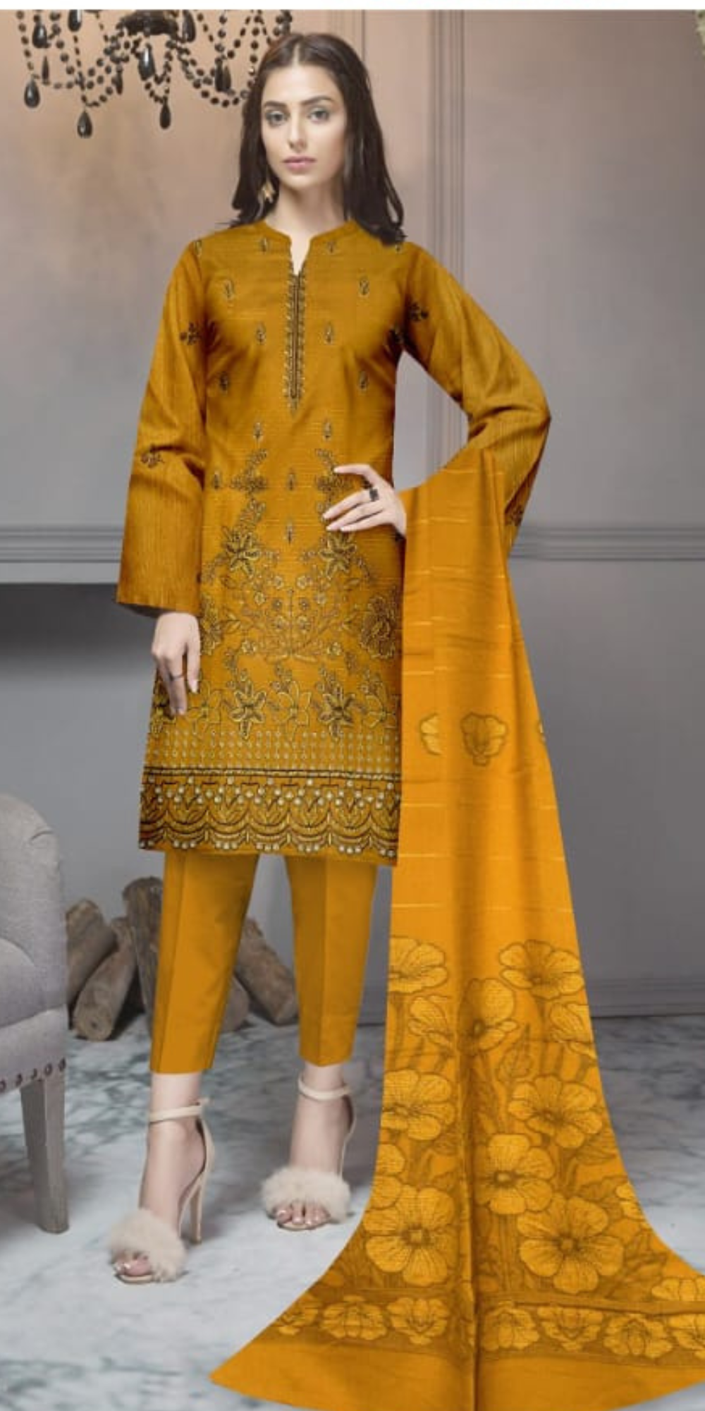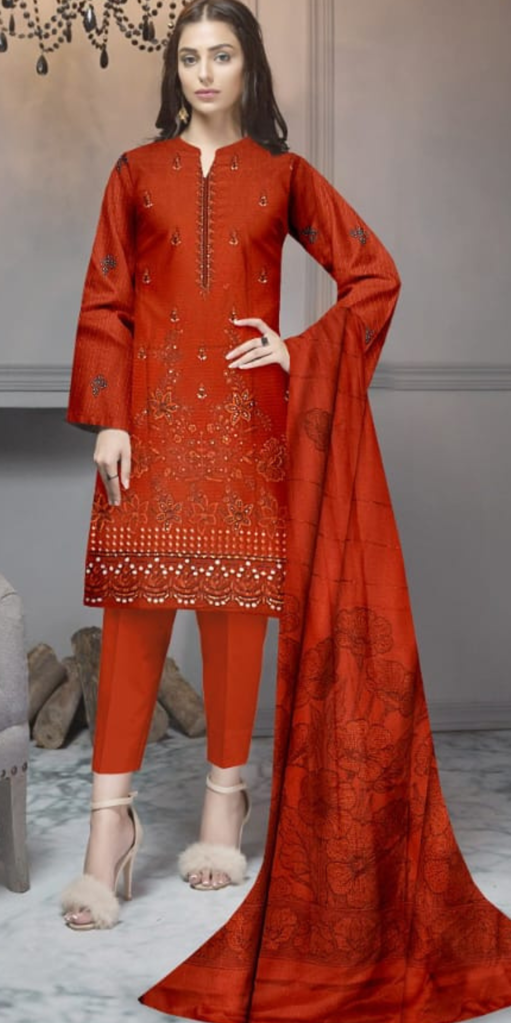 Elevate your winter wardrobe with this elegant Fancy Dhanak Bana Doria Suit, crafted with a luxurious feel and rich embroidery. The shirt features 2 Head Full Boring Cut Daman Embroidery along with beautifully detailed Back and Bazu Embroidery, giving the outfit a refined and stylish finish. Paired with a premium Dhanak Jacquard Shawl, this set offers both warmth and sophistication, making it perfect for the winter season. The look is completed with a soft and comfortable Dyed Plain Trouser, ensuring an effortlessly graceful appearance for festive events, family gatherings, and formal occasions. This ensemble blends tradition with modern charm, making it a must-have addition to your winter collection.
